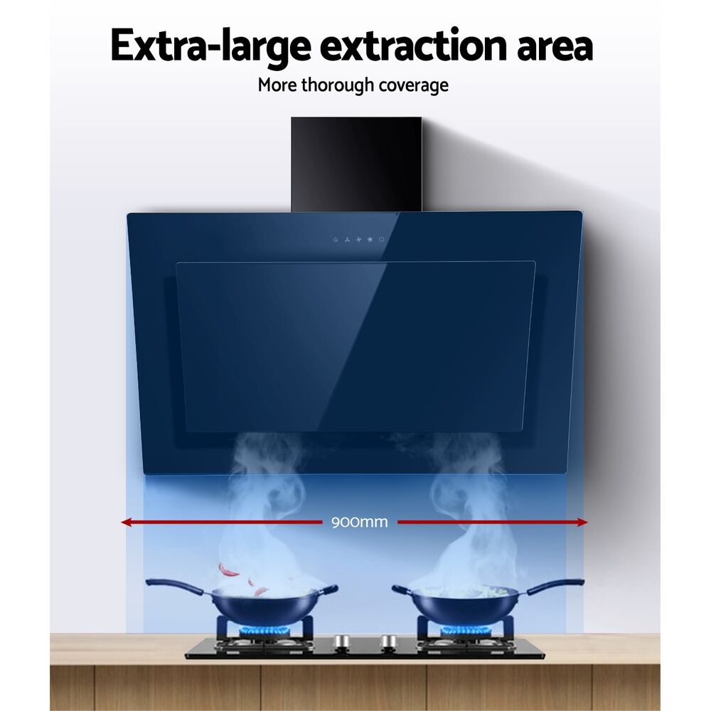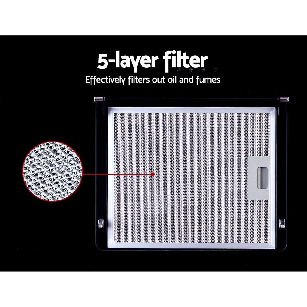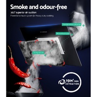 $272.48The Devanti Angled Range Hood is anything but mundane. With its unique side-draft wall-mounted design, the 30 degrees-inclined range hood helps to solve a perennial problem with traditional range hoods. No more getting your head in the way of your cooking and a better view of your cooking too. And you can also say goodbye to smoky fumes and unwelcomed cooking odours too. With its high-performance motor, the black tempered glass finish range hood provides a steady upflow and filtered extraction of fumes and oil to keep your cooktop area clean and fresh after every use. With its 3-speed touch controls, the extraction speed can be adjusted to suit the circumstances. Other features include two non-stick 5-layer aluminium filters that are removable and replaceable and two bright LED lamps to facilitate your Not least, it is also totally energy-efficient with plenty of cost savings for you.