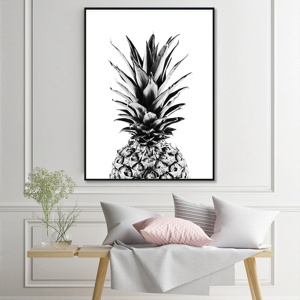 Wall Art 90cmx135cm Pineapple Black Frame Canvas