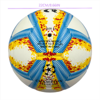 A yellow, blue and red football with color matching size5, PU fitting material, Christmas Boxing Day gift, including pump+air needle+net bag set,socce