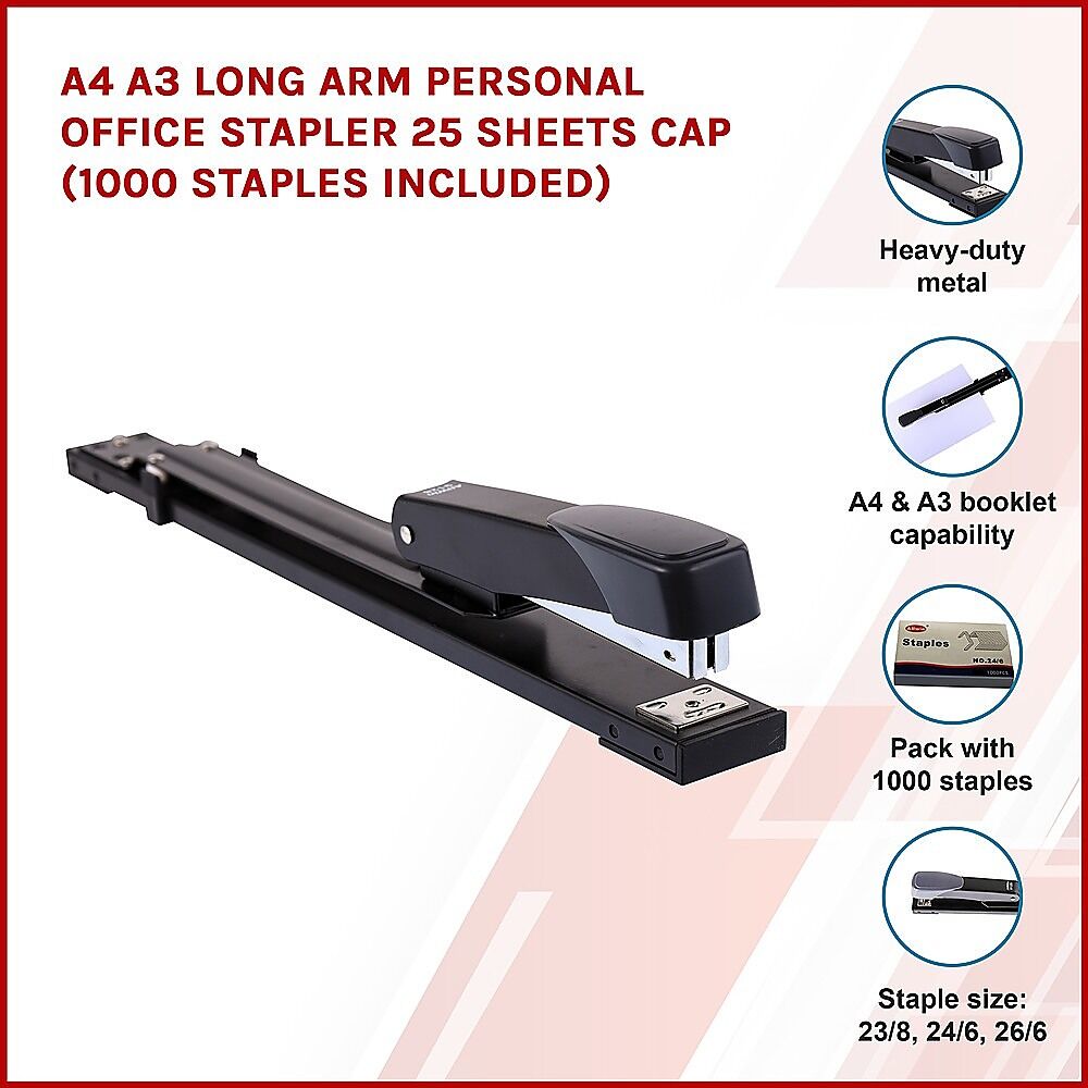 $26.09For your office or home, this long-arm office stapler by Randy Travis Machinery can handle almost any application for which you need a staplerincluding even A4 and A3 booklets. Create advertising brochures, print versions of your e-books, or instruction manuals for your products.