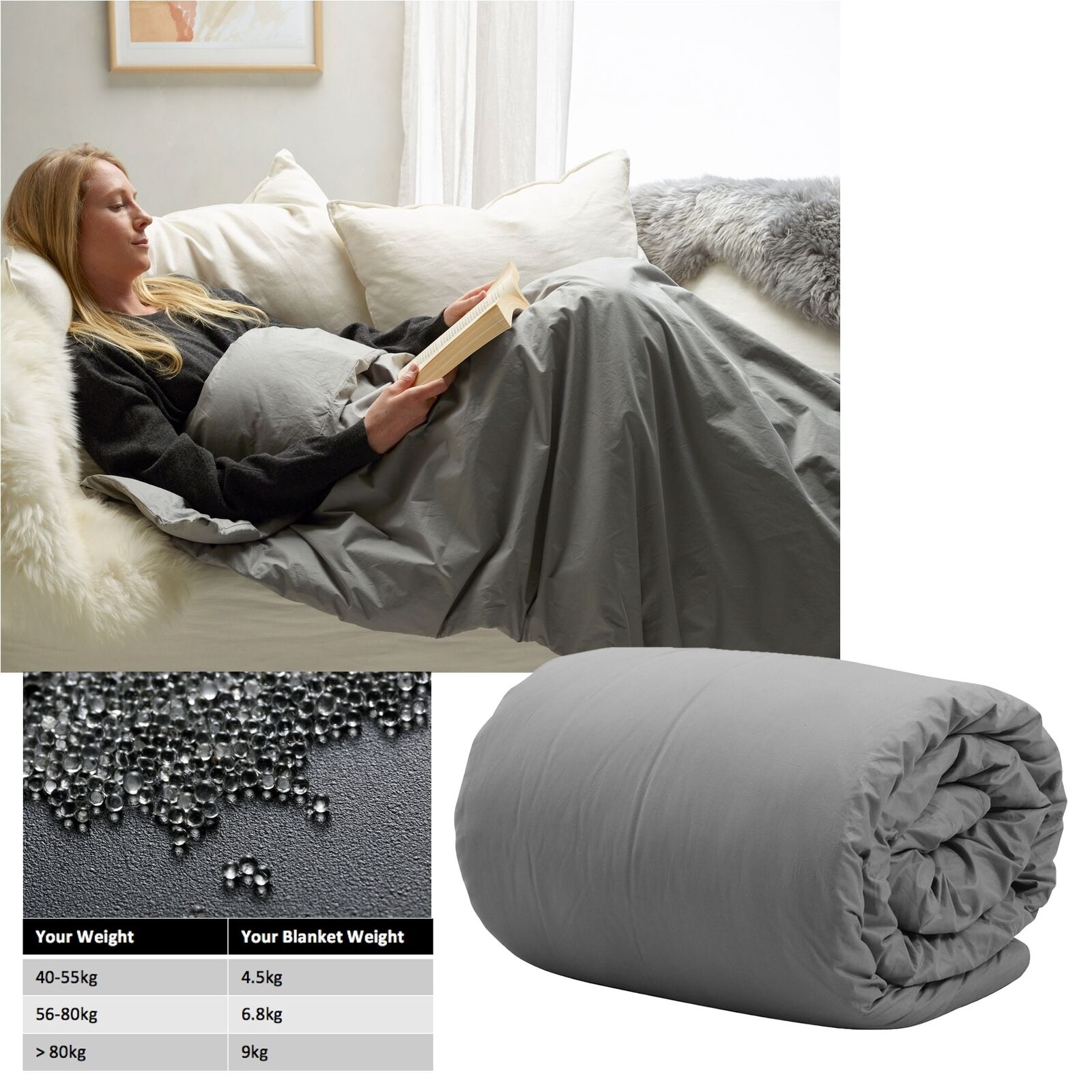 Calming Blankets are weighted blankets that are designed to improve your sleep and ease the symptoms of anxiety, stress and insomnia. The Calming Blanket utilises the relaxing principles behind deep pressure stimulation therapy. Our Calming blankets are weighted with a unique high-density nontoxic glass micro-bead, that distributes evenly around the body for your comfort. Features quilted design and made from 100% Cotton fabric and Polyester fill.