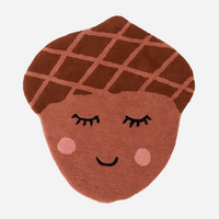 The gorgeous Acorn Floor Rug is a rich chestnut brown colour in two shades, with a serene, smiling face detailed in black with rosy, pink cheeks. The Acorn Rug is the perfect match to the new colourway.
