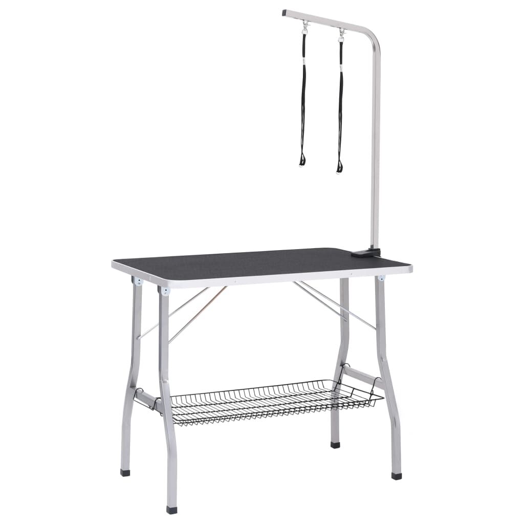 $151.19The dog grooming table is a good choice for providing your lovely pets the most comfort while being groomed. This pet grooming table is supported by steel legs, making it stable and sturdy. The large non-slip tabletop creates a comfortable surface for your pets to stand on. Additionally, the stainless steel grooming arm is height adjustable. So, you can adjust in a perfect height to suit you and your pet's size. The table is foldable, which is ideal for mobile pet groomers and home use as it is easy to store. There is a basket under the tabletop, which can be used to store pet daily items. What's more, the round corners prevent injury.