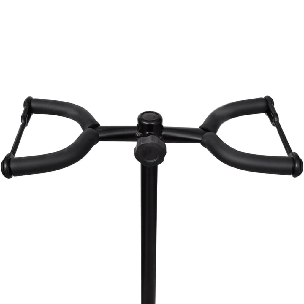 $51.29Made of quality steel, this adjustable double guitar stand is ideal for placing all kinds of guitars. Its unique design allows you to place two guitars at one stand. Built with heavy duty construction, this guitar stand is designed for years of use. A removable yoke allows you to make desired height adjustments, making it perfect for any guitar. Thanks to the foamed neck supports and bottom holders, your guitars will be free from any damages. Anti-slip rubber end caps not only protect your floor from scratches, but also provide an added base support. The foldable design brings easy portability and better storage.