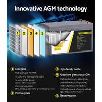 Need portable power? Our Giantz Deep Cycle Battery provides off-the-grid power supply for 4WD vehicles, caravans, campers, trailers, motorhomes, saltwater/marine applications, and all 12V appliances including portable fridges and washers. With better low-temperature performance, the battery will perform perfectly in various environments. The battery features an industry-leading build life of up to 1400 cycles, making it one of the most enduring in its class. What you get is a longer, consistent and more drawn-out charge all the time. With its advanced AGM technology, the battery enables better electrolyte absorption, cyclic stability and frequent charging without affecting performance. The bolt-down terminals also allow for a more reliable experience, and the high oxygen-recombination efficiency results in superior deep discharge recovery. The maintenance-free deep cycle battery is completely sealed, spill-proof and does not leak gas for added safety and durable use. With a convenient carry handle, portability is ensured. When you need power on the road, you need a Giantz Deep Cycle Battery.