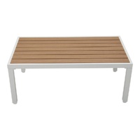 The set includes a range of seating options: two armrest sofa, a left armrest sofa, a right armrest sofa and a slatted top coffee table. These pieces are chic, deep and inviting, perfect for enhancing the modern style of your garden.