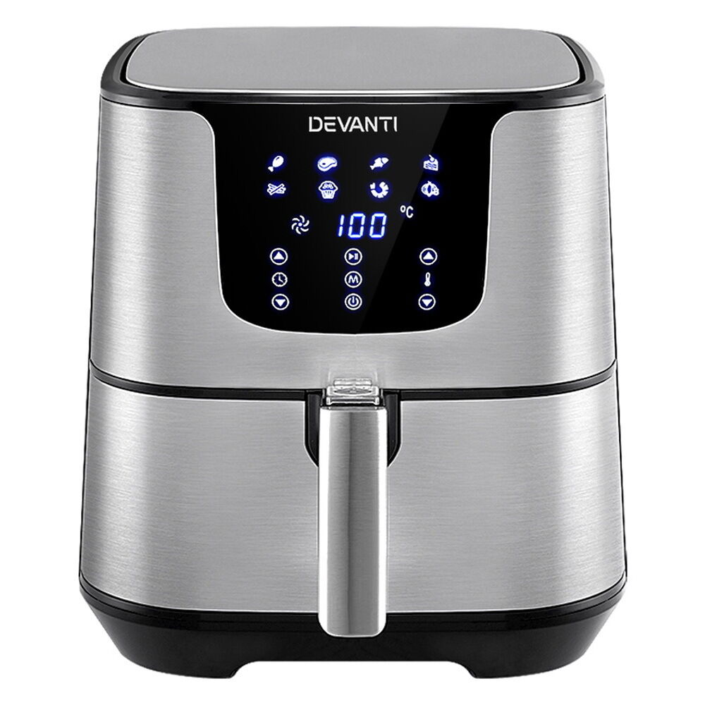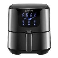 $87.41With its stunning and sleek stainless steel exterior, our Devanti Air Fryer turns the ordinary into the extraordinary. And that goes too for its exceptional cooking abilities. With its innovative air frying technology and 1700W of power, your cooking is done efficiently and thoroughly with less odours. Better still, all the wonderful cooking is done without a single drop of oil and yet is as delicious and sumptuous as traditional methods. In fact, foods cooked in in our air fryer have up to 80% less fat than deep-fried foods. This model has an all-in-one design and does not only fry food, but also roasts, grills and bakes. Just set in the cooking mode (up to eight to choose from) or time (up to 60 minutes) and temperature on the easy-to-use LCD touch controls, then leave all the hard work to the air fryer. Other great features include an auto shut-off function, non-stick pan and heat shield vent for good air circulation. The air fryer has a large 7L capacity making it suitable for most families. Most importantly, the components are dishwasher-safe, which makes the cleaning up process as easy as the cooking process.