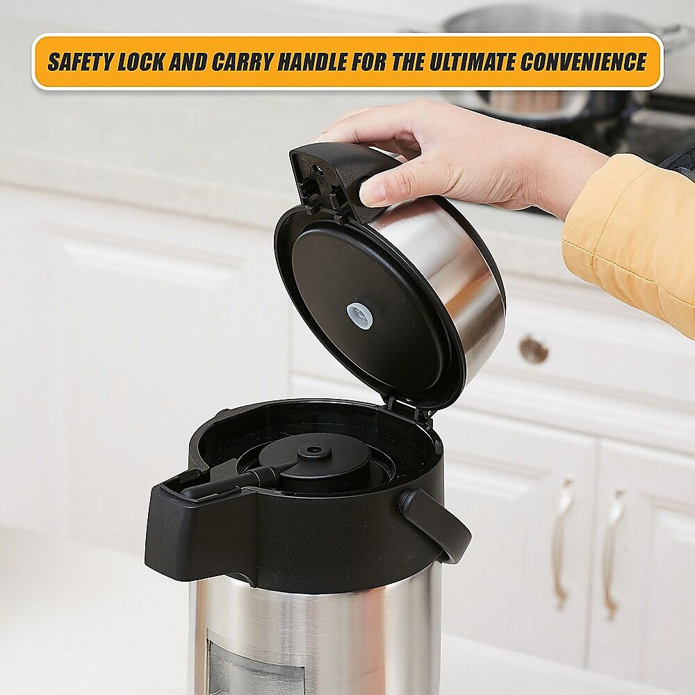Crafted from the highest-quality stainless steel, your flask will look as good as it functions. Compared to a glass-insulated flask, the steel airpot flask is far more robust, andwill stand up to even the roughest conditions without breakage.