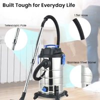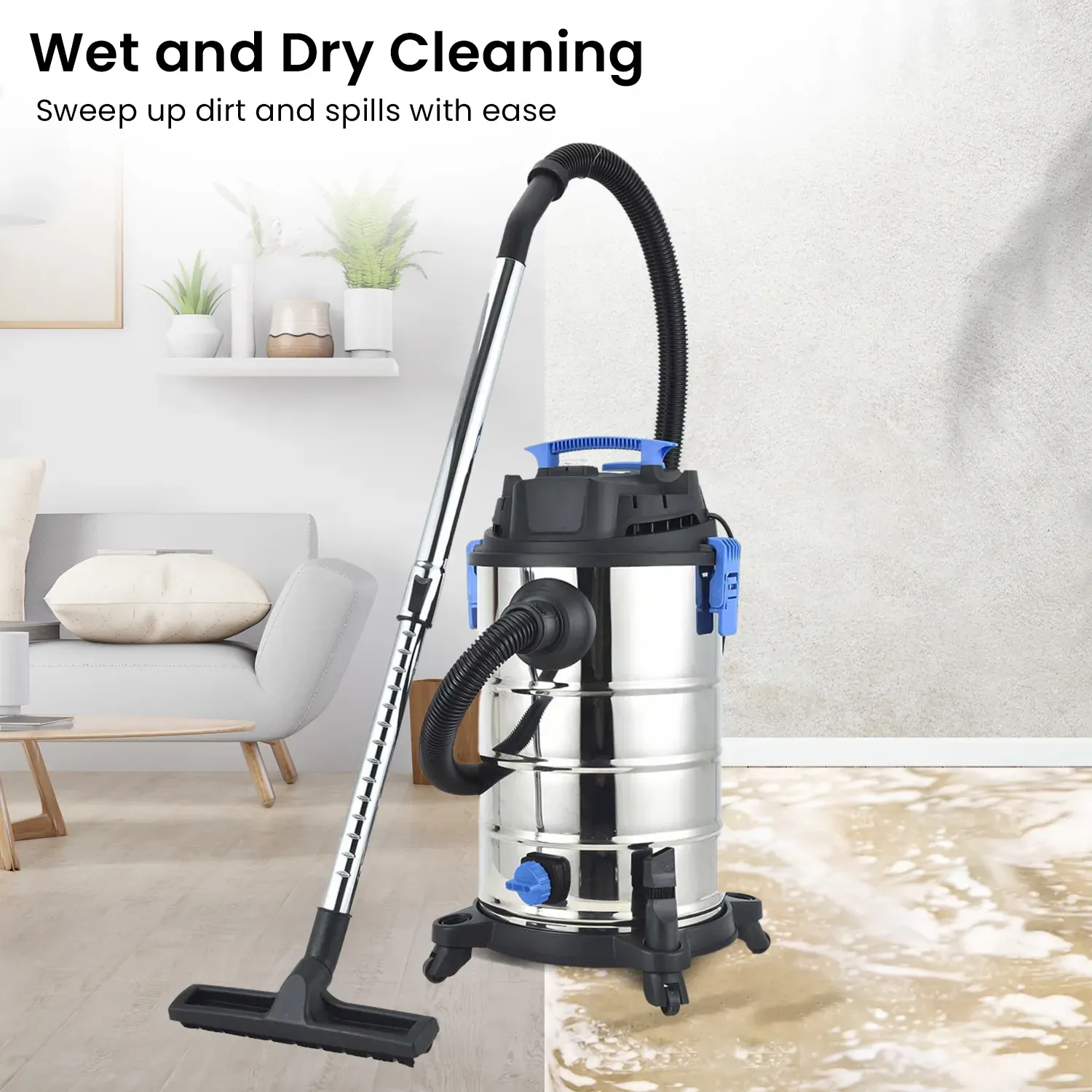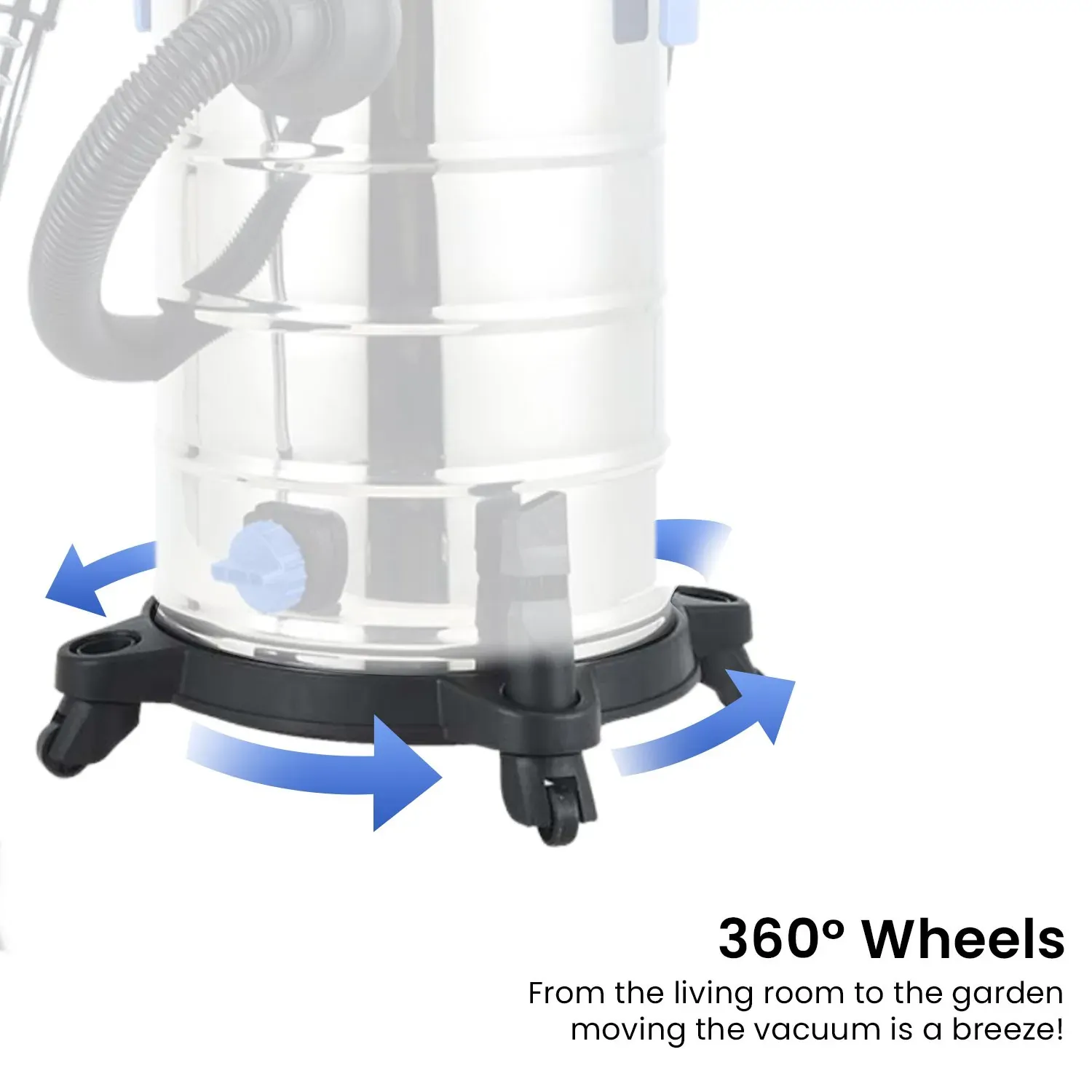 With its generous 30L capacity, this vacuum can handle everyday cleaning like a champ. It removes dust mites, dander, fur, dust and more, helping ensure that you have a clean, allergy-proof home. The built-in castors allow for easy repositioning, so you can move from room to room with no hassle. It also has a drain plug for quick emptying and a HEPA filter to capture fine dust and particles. And for small nooks and crannies, the crevice nozzle ensures thorough cleaning!