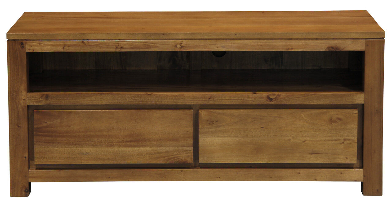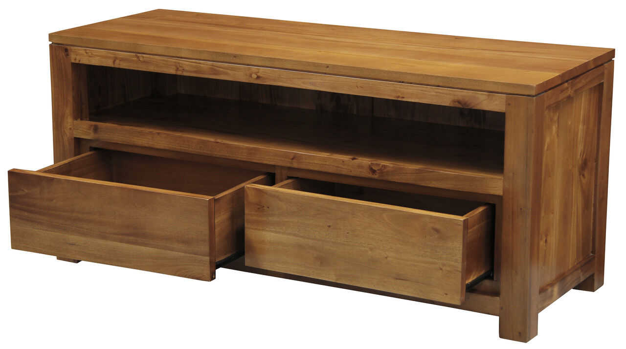 $485.95The Amsterdam Entertainment Unit captures the warmth of treasured moments and the coziness of intimate evenings. Made from solid mahogany timber, it carries the whispers of timeless tales. Two spacious drawers offer a sanctuary for your beloved collections and memories, just beneath the space that holds your world of visual stories.