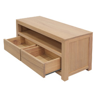 Embrace the natural allure of the Amsterdam Entertainment Unit, now in Solid Mindi Timber with a Natural finish. Its gentle hues and robust character offer a sanctuary of calm for your home media essentials. Two beautifully crafted drawers glide open, revealing a space where stories and laughter are shared and cherished.
