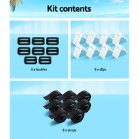 $19.52If you have a pool at home, then a pool cover is essential as it keeps the water warm, prevents leaves and debris from dirtying the pool and reduces evaporation. A cover roller then helps you easily cover and uncover the pool as you need. But you also need to be able to attach the two securely together for them to work properly as they should. Perhaps you never had the attachment kit in the first place, or you just need a replacement. Whatever your situation, our AquaBuddy Pool Roller Strap Kit will keep you well-covered. The kit includes eight each of nylon straps, buckles and clips to secure your pool cover to the roller. The kit is easy to install you stick the straps onto the roller, use buckles to secure clips on the straps, then simply clip-on the clips to the pool cover. The parts are crafted from durable nylon, PP and PE material that is both wear-resistant and UV-resistant to ensure longlasting use.