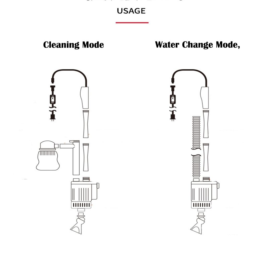 - Convenient to use. Press the on/off button, the water in aquarium will be pumped out automatically through a hose for changing water.
