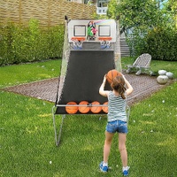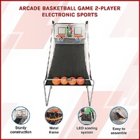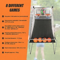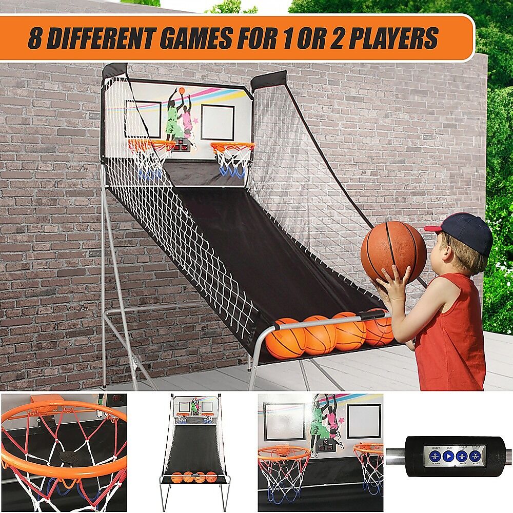 $244.58This Arcade Basketball Game is a perfect game for the entire family. It's designed for one or two players and allows you to choose from eight different game play options. The frame is constructed of sturdy 7/8-inch diameter metal with durable 12-inch diameter steel rims and braces to provide stability during active play. The LED scoring system keeps track of score and time and also has integrated arcade sound effects for an authentic stadium experience. After playing, it can be folded quickly and easily for storage. All accessories are included.