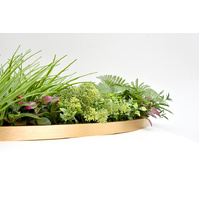 Please note:Your artificial green wall disc will arrive tightly packed in a box to ensure protection during shipping. However, this may result in the foliage appearing squished, which is normal and can be easily fixed. Simply adjust the branches towards the edges of the frame and bend them to cover any visible spaces.
