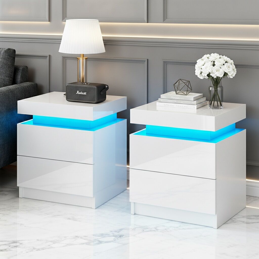 Tired of fumbling in the dark for a light switch in the middle of the night? With our Artiss LED Bedside Table, your problems are solved. The bedside table comes with built-in LED lighting that can be customised into 16 different colours to suit your preference. Not only will it create a beautiful ambience, it will also save you from buying extra bedside lamps or nightlights. Two deep drawers sliding on smooth anti-rust runners provide ample storage space. There is also a top storage compartment that opens with a lift-up lid like a treasure trunk, which you can fittingly fill with your own personal treasures. Better still, the handle-free design gives it a modern vibe that stands out from the mundane. Constructed from quality particle board and MDF with melamine finish and UV high-gloss front, the bedside table is durable and easy to maintain. And it will be the perfect addition to your modern bedroom with its contemporary and linear design. Or you can keep one in the living room to wow all your houseguests.