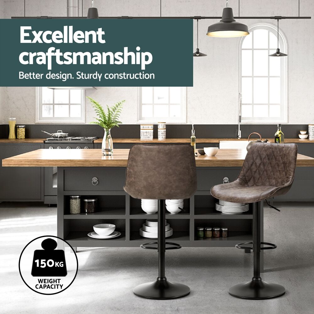 $292.01Not an ordinary piece of furniture but stands out in every aspect, whether it's craftsmanship, style, upholstery, comfort, or quality that speaks for itself. If you're after achieving an elegant vintage yet contemporary feel in your space, our Artiss' Rushal bar stools with an elegant back and seat design are just perfect. They're great for catchups over coffee with friends, a jam session with the band, or daily living. Our bar stools are uniquely designed that will make you want them in your space. You can style our Rushal bar stools anywhere, from living rooms to kitchen and the bar section, they will effortlessly fuse in any décor and lend an elegant vintage feel to your space. These bar stools can even be used as an impromptu seat when you need extra sitting space. Featuring an elegant diamond back design with beautiful PU vintage leather upholstery, our bar stools have thick foam soft padded seats, sturdy powder-coated pedestal base, adjustable height with SGS-tested gas lift, and floor protector for ultimate stability and scratch-free floors. Their solid structure ensures longlasting use and superb durability. They also feature 360 degree rotatable seat so you can face any direction for ease of conversing with guests and family. Our Rushal bar stools make a timeless piece of furniture, and with two colour options, you can choose that best complements your space and suits your taste. Artiss' Rushal bar stools would make a gorgeous addition to your space. Shop them today!