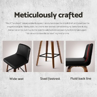 Meticulously crafted with solid plywood in a chic black finish for the frame, the Bentwood Bar Stool features a generously padded faux leather seat that swivels 360 and a wide backrest that feels comfortably smooth and looks absolutely classy. The mid-height backrest also provides appreciable support while the anti-slip rubber pads at the bottom of the legs remain firm and steady even with robust use. Not least, the powder-coated steel footrest lets you perch in style, feet up.