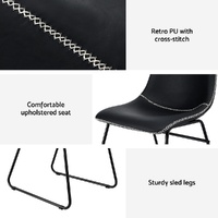 The ergonomic curved backrest and comfy padded seat provide all-day support, whether you're working, relaxing or entertaining. Built with heavy-duty metal legs in a classic sled base design, it offers stable seating (supports 150kg capacity) while the easy-clean surface resists spills and scratches.