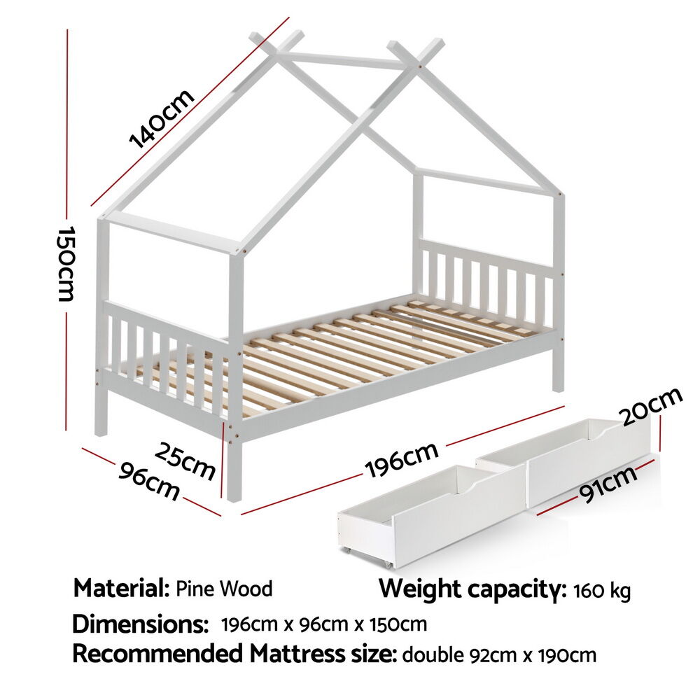 This bed frame perfect for organizing clothes and toys. Maximize your child's room space while fostering good storage habits—an ideal choice for any compact bedroom. This toddler bed is designed to fit seamlessly into your home.