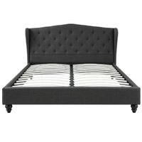 Elevate your bedroom with the Queen Bed Frame, featuring an elegant European-inspired wing headboard. Upholstered in premium woven linen fabric with tufted detailing and high-density foam padding for exceptional comfort. The robust steel frame construction features reinforced bars, heavy-duty connectors and wooden arched slats for lasting support. An adjustable centre strut enhances stability. Finished in versatile charcoal, this king size bed frame with headboard delivers timeless sophistication. Mattress sold separately