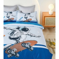 Transform your child’s bedroom into a space adventure with our astronaut-themed quilt cover set. The quilt cover features an astronaut on a skateboard, with planets and stars in the background, making it perfect for any young space enthusiast.