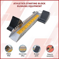 The athletic department of any high school or college will benefit with a supply of these sturdy track starting blocks. The construction of this athletic starting block is strong yet mobile and easy to put in place and quickly remove. The block features pads that are adjustable to varying positions for clean take-offs.