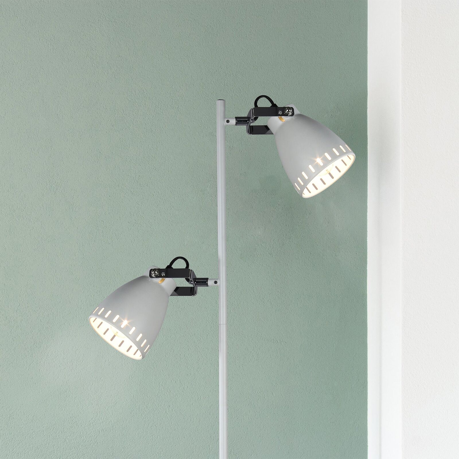 The Audrey Floor Lamp has two lamps mounted on the vertical metal light stand which can be adjusted to direct light to the best angle for the space it illuminates. Whether it focuses on wall art, provides ample reading light or offers a general corner room glow, the Audrey Floor Lamp delivers the lighting goods.
