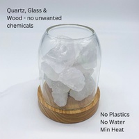 WHAT'S IT MADE FROM? 100% natural crystal quartz, with individually hand-blown glass reservoir and solid wood.
