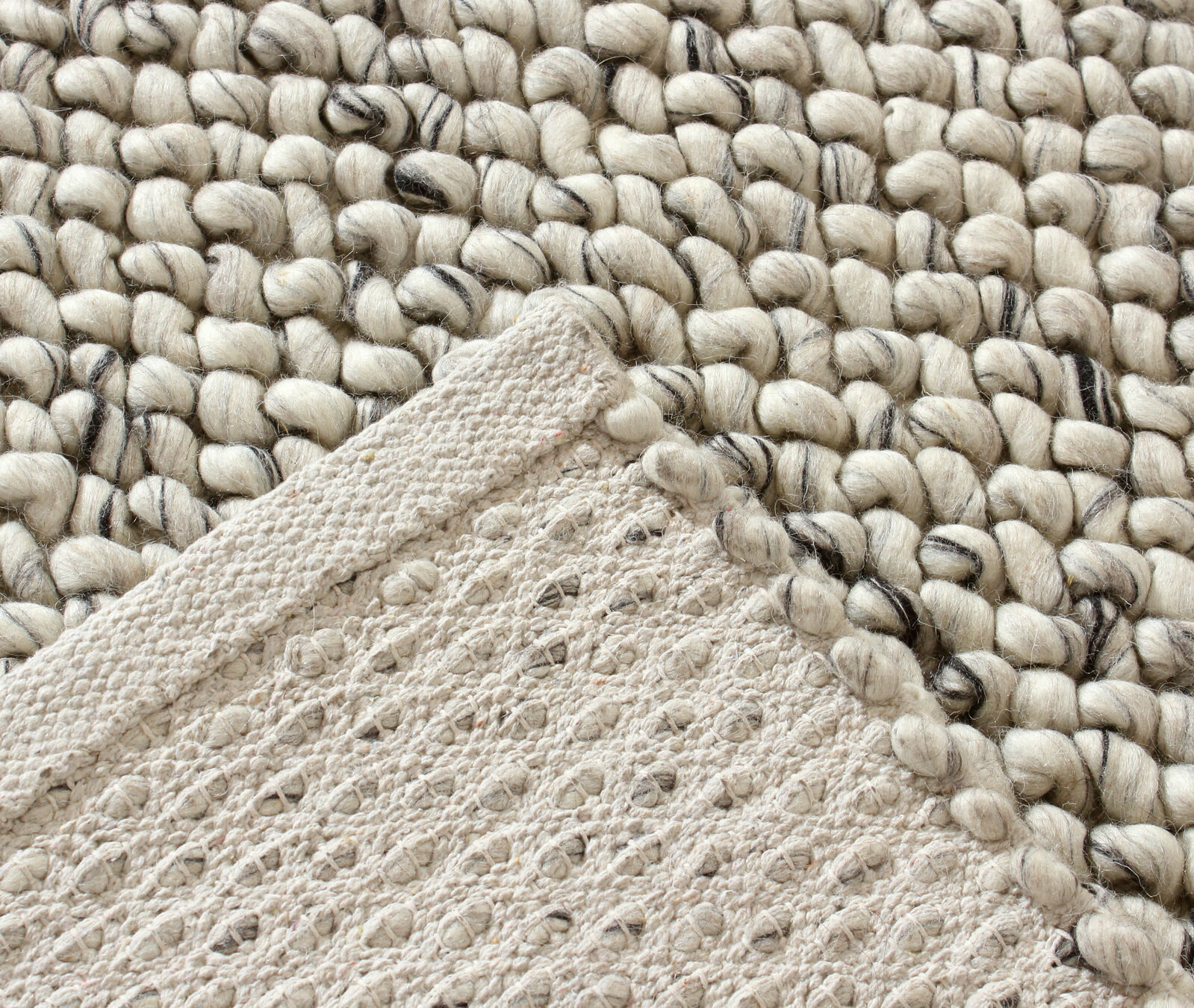 $827.69The Aurora collection is a stunning pattern of concentric diamonds that textures this rug is created by pairing up lines of chunky wool loops. The delightful bobbles show off the naturally occurring ivory and ash grey hues of the wool, while the high-low effect adds depth and fascination to the monochromatic rug. Hand-tufted by skilled craftspeople, the durable area rug stands up to high-traffic areas of the home. Eye-catching, beautiful, and soft to the underfoot are truly worth looking for in any rug. Features: Color: Ivory/ Ash Grey Material: 100% wool Luxurious Soft Finish Soft Pile This product is natural wool, and it is in its nature to shed. Country of origin: India Slight variations in colour, texture, and weave make each rug unique. Please note that there may be variations of /-5% in sizing & up to 10% for handmade items. New rugs, particularly those that include wool fibres, are susceptible to shedding. With care & treatment, most rugs should stop shedding within 2-3 months. Dimensions & Weight: 160cm x 230 cm 10 kg 240cm x 340cm 19 kg Specification: Product Type - Area Rug Material – 100% Wool Construction – Hand Woven Shape- Rectangular Rug Pad Needed- Yes Handmade – Yes