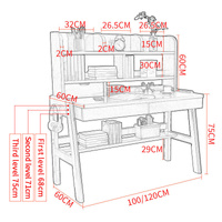 Take your workspace to the next level with this Solid Wood Study Desk! Built with durable rubberwood, its features include a high shelf, drawers, and ample shelves for keeping your work organized. You can also hang a bag on its hanger for easy access. Get ready to take on any challenge!