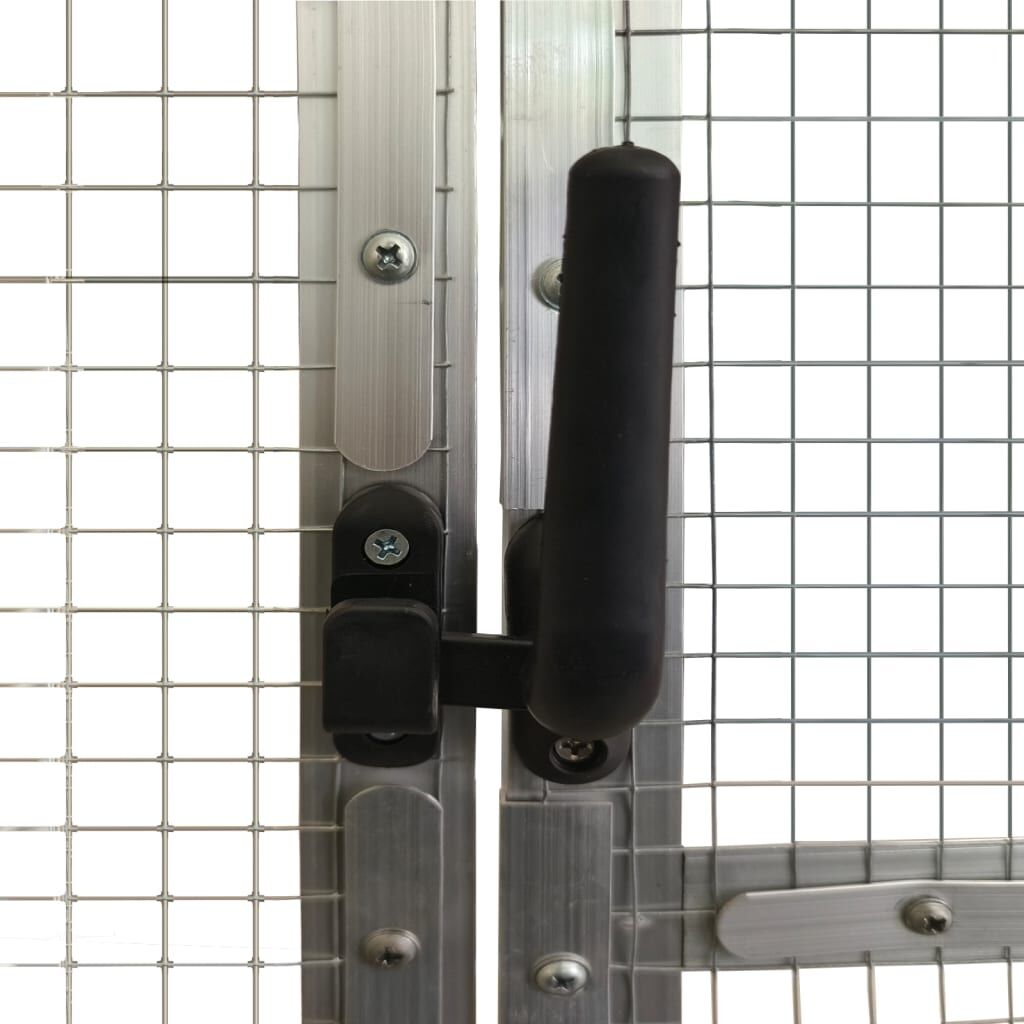 This aviary provides a cosy and comfortable place for your birds to fly and play safely. Sturdy frame: Aluminium metal is lightweight and strong. It's resistant to corrosion with a self-protecting oxide layer. Thanks to the sturdy aluminium construction, this bird aviary is built to last.Wire mesh gird: The budgie cage is equipped with wire mesh grids that prevent mischief and unexpected accidents. In addition, they also allow you to observe your birds daily and guarantee your birds a wide field of view and enough fresh air.Ample activity room: The parrot cage provides your birds with ample activity room to walk around, play and fly around with ease. Besides, it is also suitable for other small animals such as rabbits, ducks, chickens, geese, etc.Lockable door and window: The hinged door with a lockable latch system of the large bird cage ensures extra security and safety for your birds. The large parrot cage also has a lockable window for easy feeding.