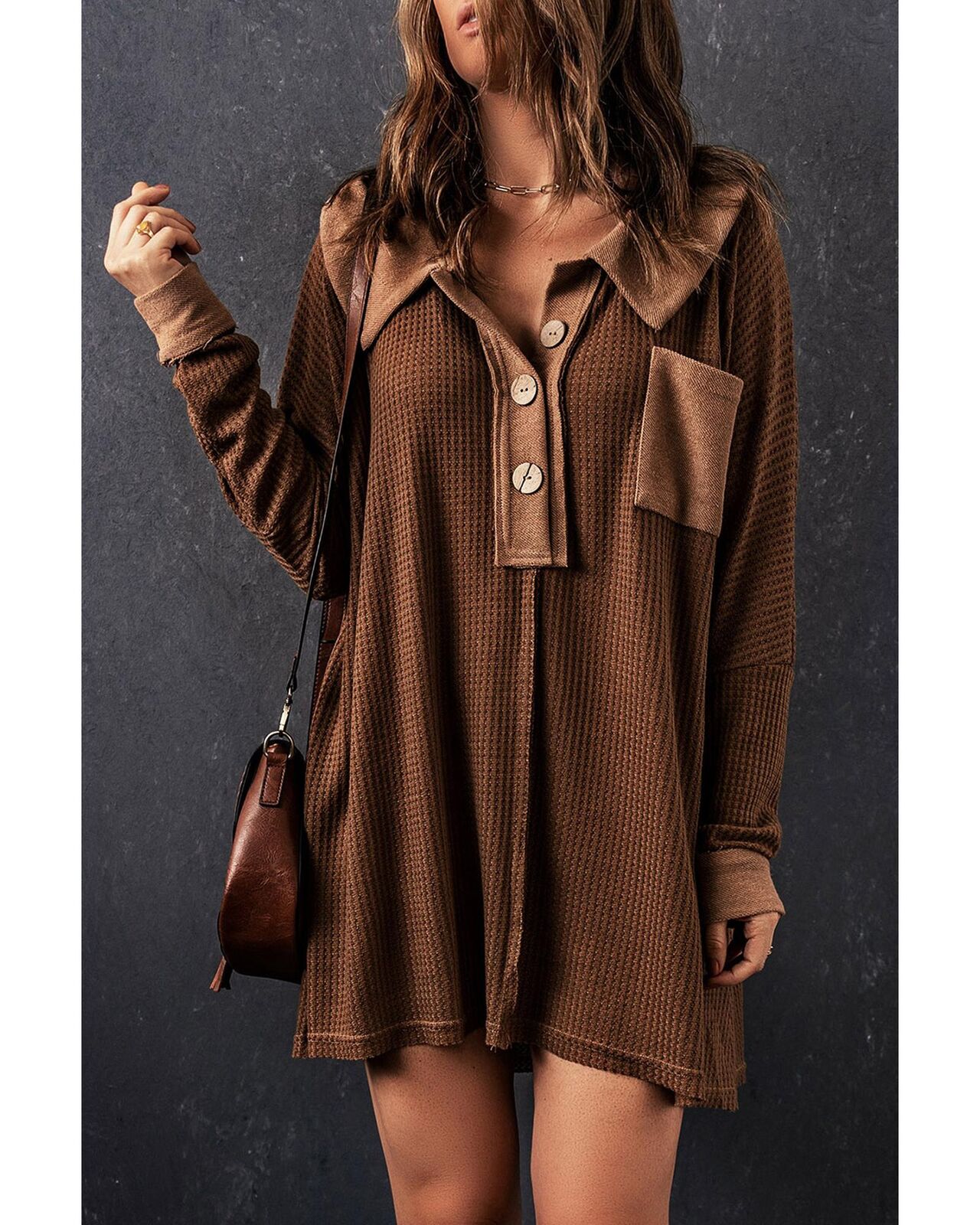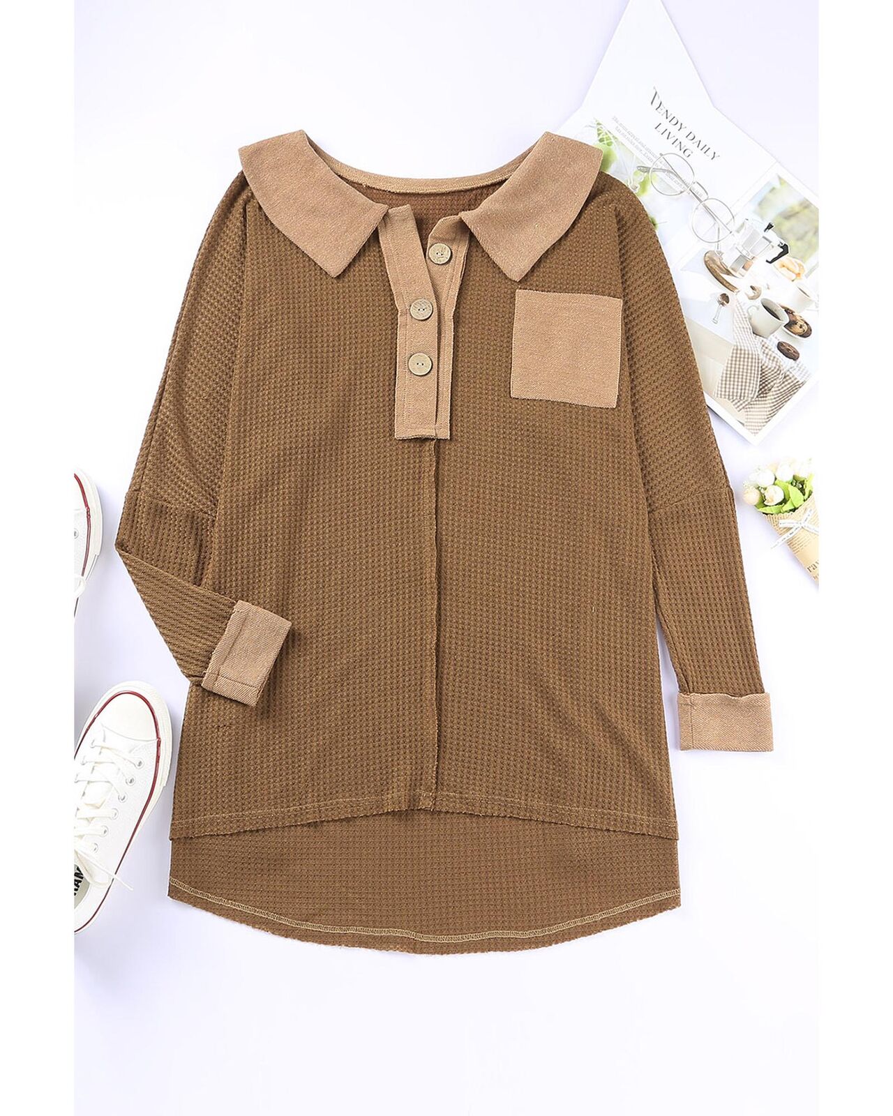 • Stylish and versatile waffle knit top