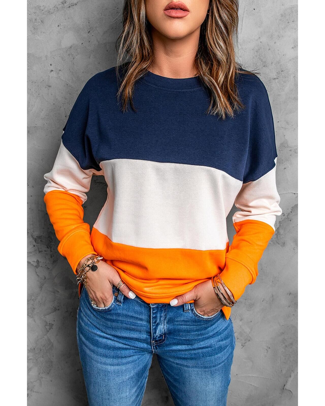 • Colorblock Orange Contrast Stitching Sweatshirt