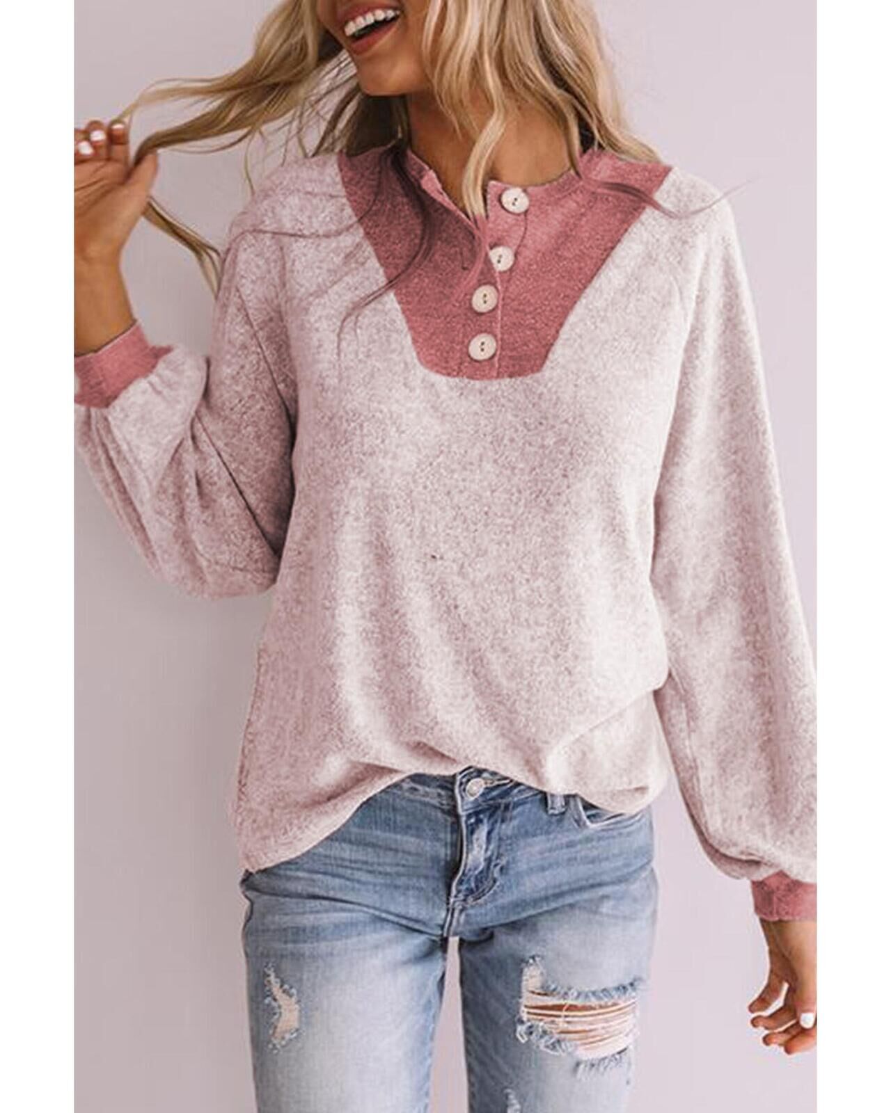 • Stylish and versatile Button Contrast Puff Sleeve Blouse