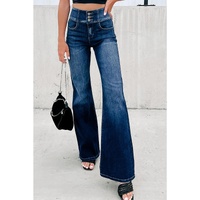 • Womens Buttons Elastic Wide Waistband Back Flare Jeans