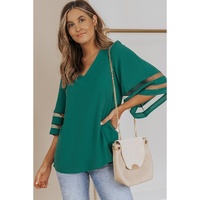 Azura Exchange Flare Sleeve V Neck Loose Blouse - S