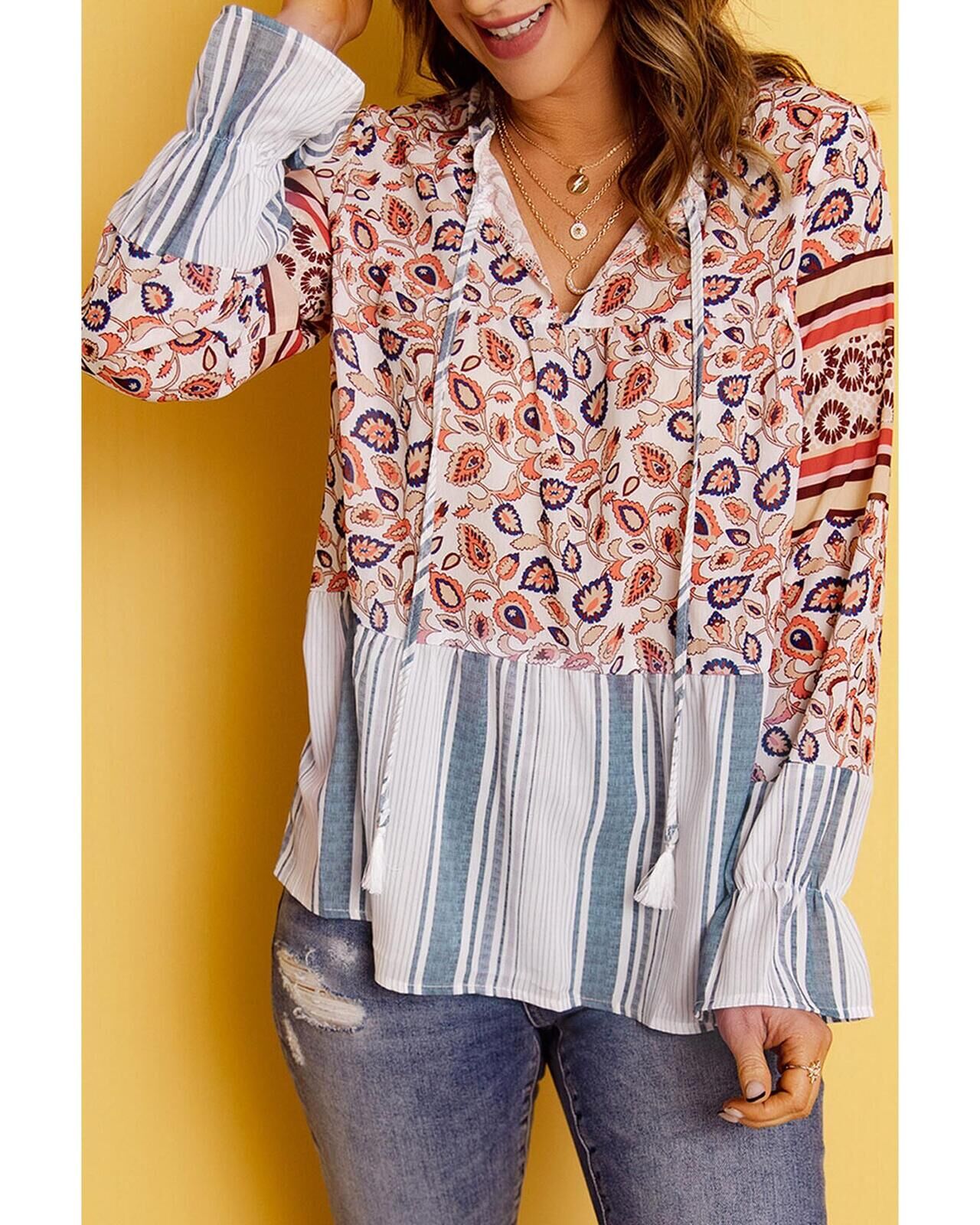 • Multicolor loose fit floral striped blouse