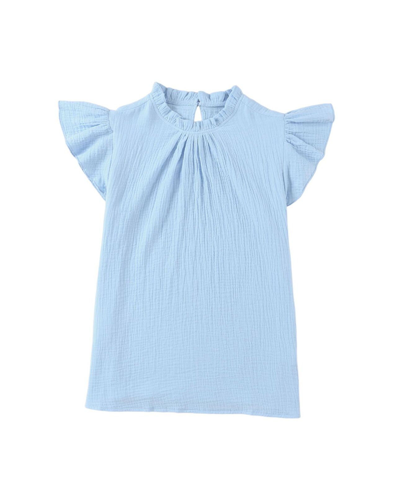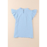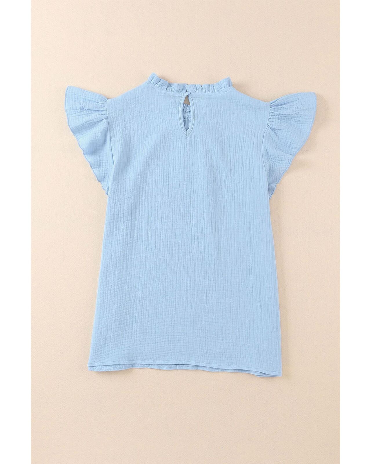• Stylish and feminine Flutter Sleeve Frilled Neck Textured Blouse