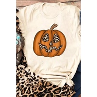 • Womens khaki t-shirt with a Halloween leopard pumpkin print