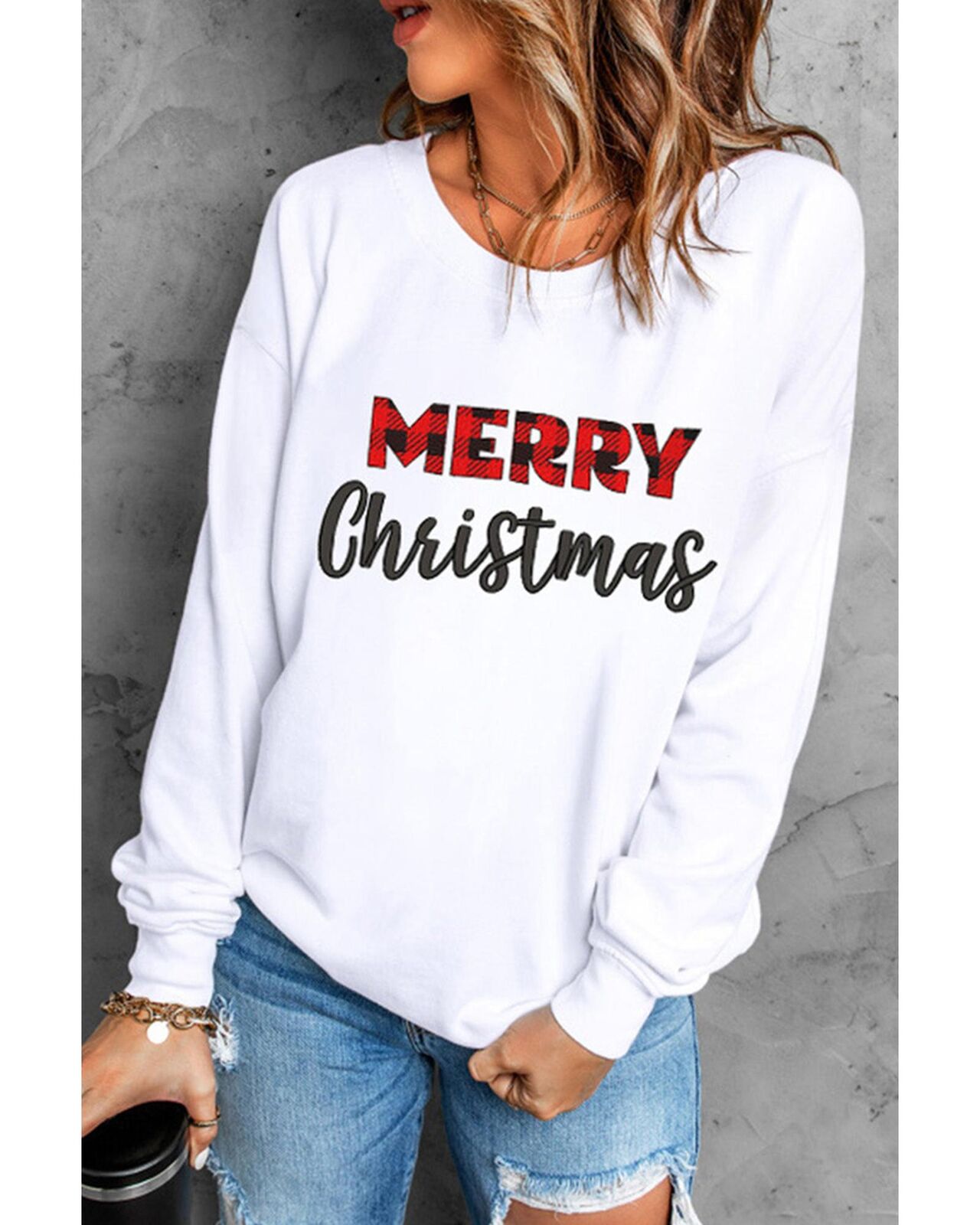 Azura Exchange MERRY Christmas Plaid Print Pullover Sweatshirt - L
