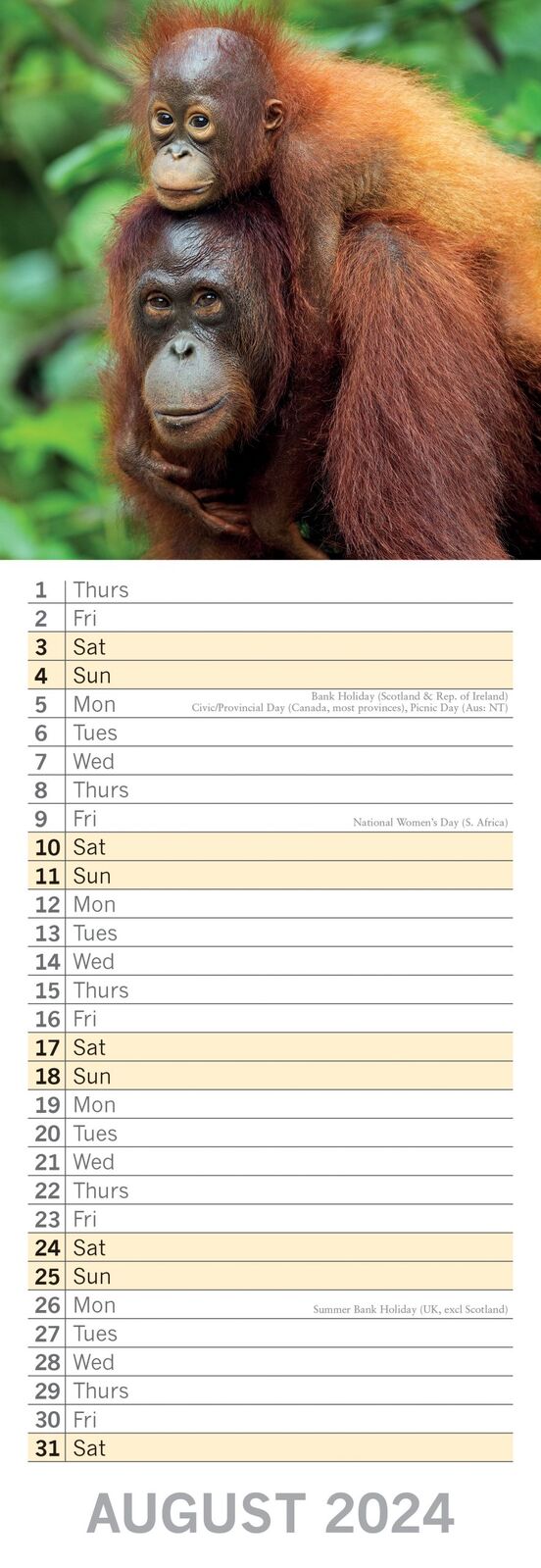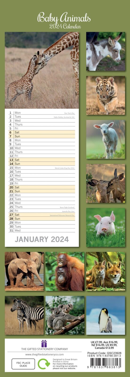 Baby Animals - 2024 Slimline Slim Wall Calendar Hanging Planner New Year Gift