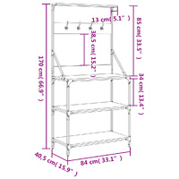 $140.59Free up your counter space with this baker's rack that boasts tons of storage. Durable and sturdy material: The engineered wood is of exceptional quality with smooth surface and also features strength, stability and resistance to moisture. The metal frame of the kitchen storage ensures sturdiness and stability.Ample storage space: Featuring 1 top shelf for spice jars, and 3 large lower shelves for kitchen appliances, the kitchen storage rack offers ample storage space to make your kitchen more organised.Practical hooks: The microwave shelf comes with 4 hooks. So, you can freely hang frequently used items and baking utensils such as dough scrapers, brushes, whisks and the like according to your needs and always keep them at hand.Adjustable feet: The adjustable feet with plastic pads keep the kitchen storage stand balanced on uneven ground and increase stability. Warning:To prevent it being overturned, this product must be used with the provided wall attachment device. Good to know:Screws and plugs for inside the wall are not included. We advise to find and use screws and plugs suitable specifically for your walls. If you're not sure, you can consult with a professional. Please read and follow each step of the instructions.