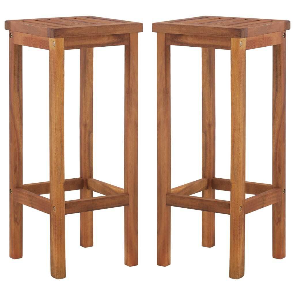 $143.99This wooden bar chair set will make a great addition to your outdoor living space. Made of solid acacia wood, the chair set is weather resistant and highly durable. The footrests add to the set's seating comfort. The oil-finished surface is easy to clean with a damp cloth. Assembly is easy. Delivery includes 2 bar chairs.