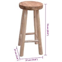 $185.39This wooden bar stool has a rugged design, and will bring a touch of rustic charm to restaurants or bars, but also to your living room or dining room at home. The bar stool has a solid teak construction, which makes it stable and highly durable. The beautiful wood grains on the seat make each of our bar chairs unique and slightly different from the next. The legs have a curved shape, which highlights the rustic design. Note: The wood grains and leg shape may vary from piece to piece. Delivery is random. The item is already assembled; no assembly is required.