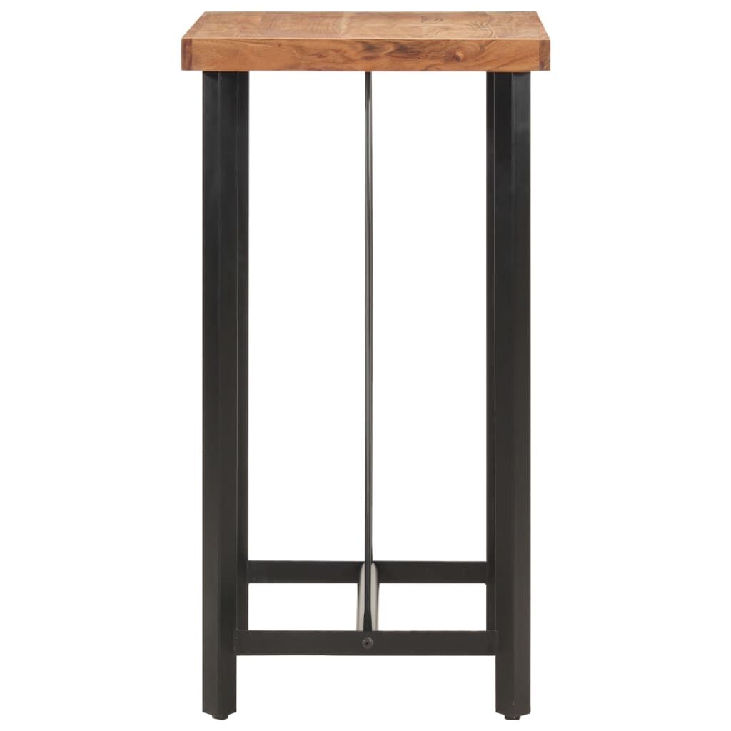 Take a sip of your favourite glass of wine or enjoy a nice meal with your family and friends around this bar table! Solid acacia wood: The table top of this party table is made of solid acacia wood. Solid acacia wood is a beautiful natural material. Acacia wood is a tropical hardwood, which is dense, sturdy, and durable.Stable iron frame: The iron frame ensures the sturdiness and stability of the bistro table.Sturdy top: The sofa table has a sturdy wooden tabletop, which is perfect for placing your drinks, food, and other decorative items.