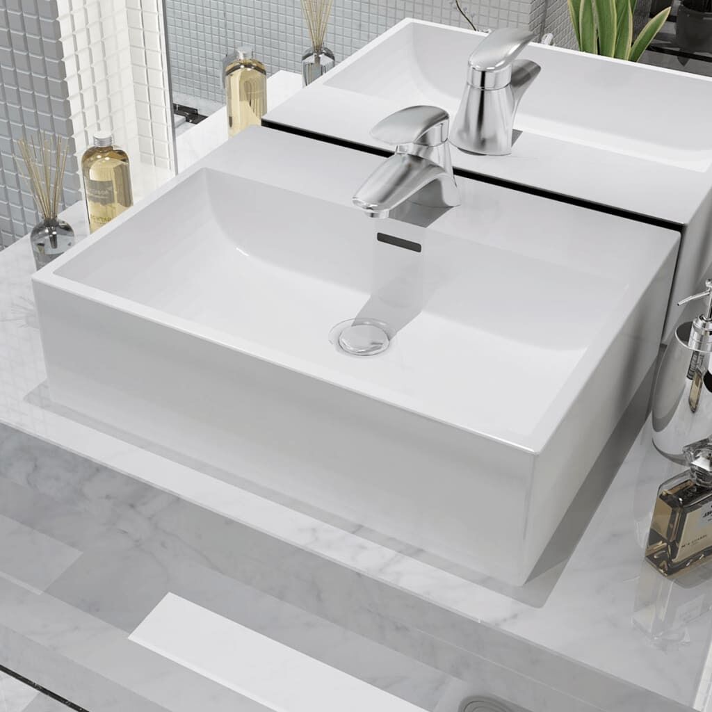 $126.34This wash basin, made of premium ceramic, will be a stylish addition to any bathroom, washroom or powder room. Its glazed surface brings itself a modern yet elegant design. This artistic ceramic basin is more than just a practical vessel for everyday use, but it is an adornment for your living space. It will definitely suit any interior style. In addition, the basin is quite easy to clean. An overflow is equipped to flow water out when it gets too full. A faucet hole of diameter 3,7-3,8 cm is included to install a tap. The drain hole is 4,5 cm in diameter. Please note that the tap and the drain are not included in delivery. If you want to wall mount this basin, it needs to be fixed by bolts.