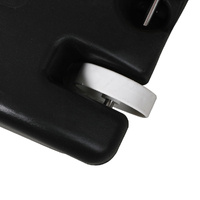 The base of the stand can be filled with sand or water. It also comes with reinforced frame bracing and a wheelbase.