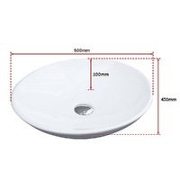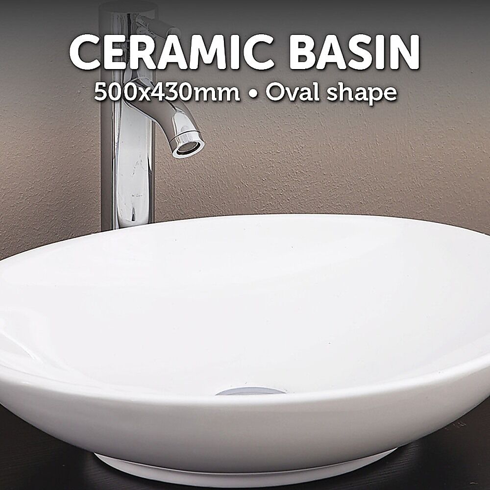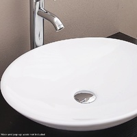 This attractive above-the counter basin is made from a ceramic contruction. The basin is oval in shape and measures 500 x 430 x 100 mm.