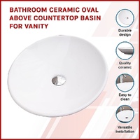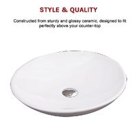 Bring class and elegance to your bathroom today! This Ceramic Above-Counter Oval basin will add a touch of elegance and with the Della Francesca name you are assured of style, strength and long-lasting endurance.